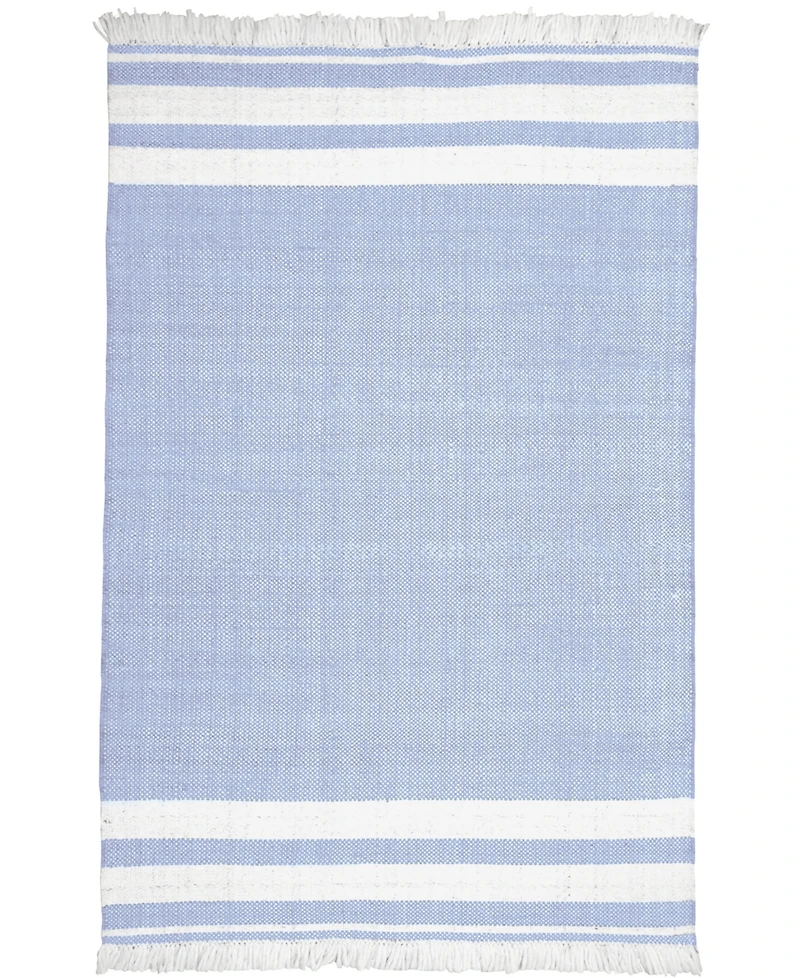 This handwoven indoor/outdoor rug made from Pet yarn, is durable and easy to clean, making it perfect for high-traffic areas. Fringes on both ends add a decorative element and texture to the rug. Measurements are approximate and patterns may vary slightly according to shape and size selected.