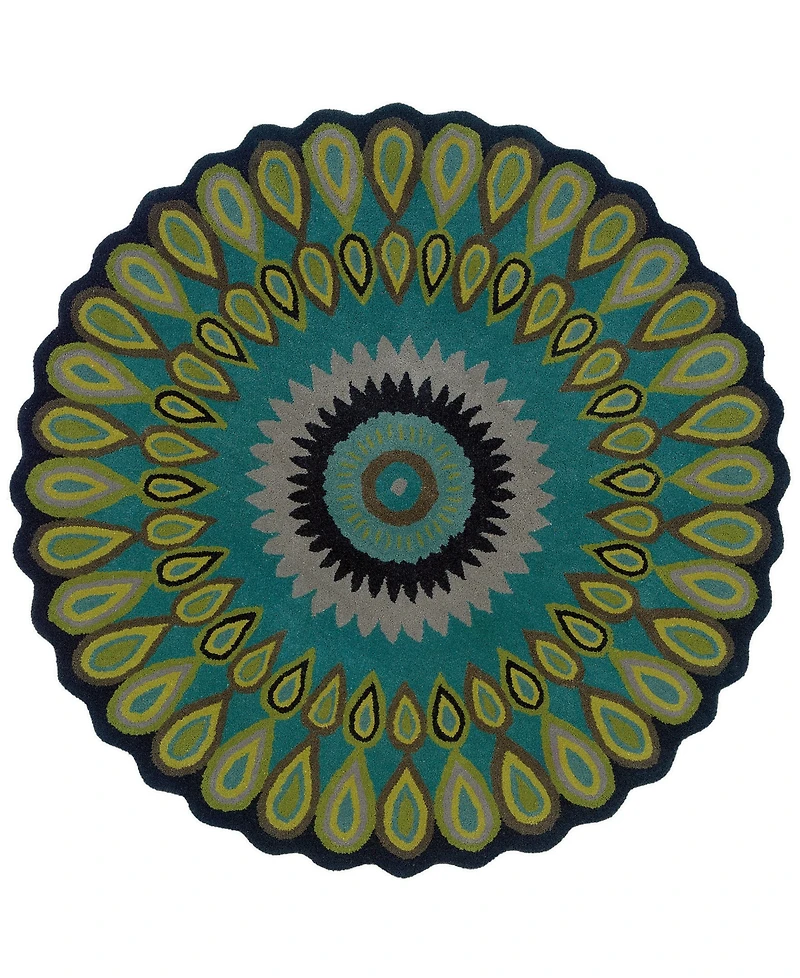 Hand tufted, this piece is handmade for your home. This rug features many unique details such as the peacock themed design, the scalloped edges, and rich coloring. The scalloped edges provide a great transition from rug to hardwood. Bring this piece home today for great style and coloring.