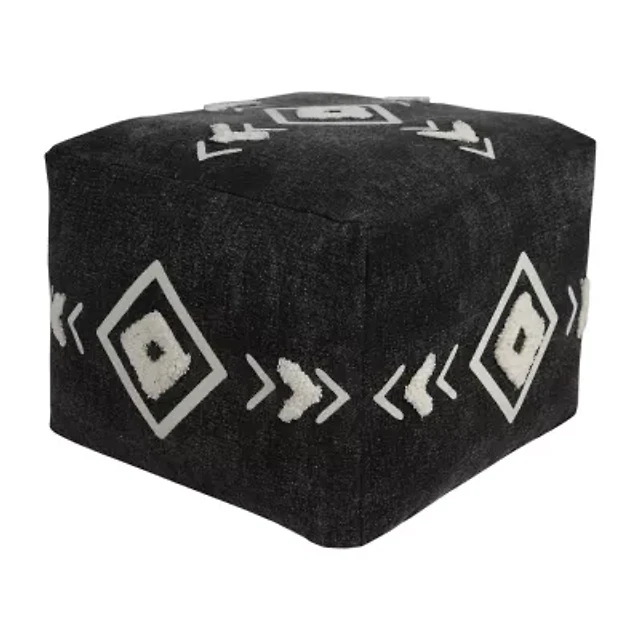Geometric Cotton Pouf – Square Ottoman for Living Room Seating or Boho Style Accent