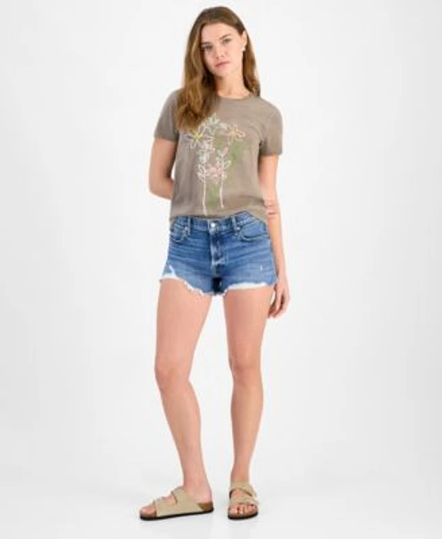 Lucky Brand Embroidered T Shirt Cutoff Denim Shorts