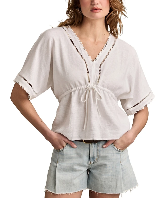 Lucky Brand Women's Lace-Neck Pintuck Cotton Top