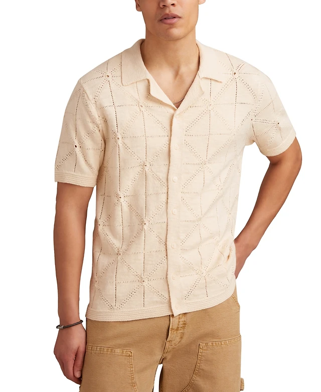 Lucky Brand Men's Short Sleeve Pointelle Button-Front Sweater