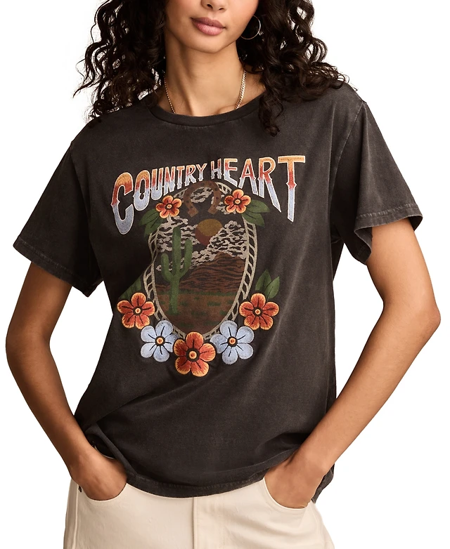 Lucky Brand Women's Cotton Country Heart Boyfriend Tee