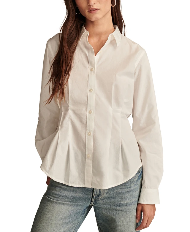 Lucky Brand Women's Cotton Pintuck Button-Front Top