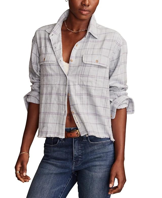 Lucky Brand Women's Cotton Raw-Edge Cropped Plaid Shirt