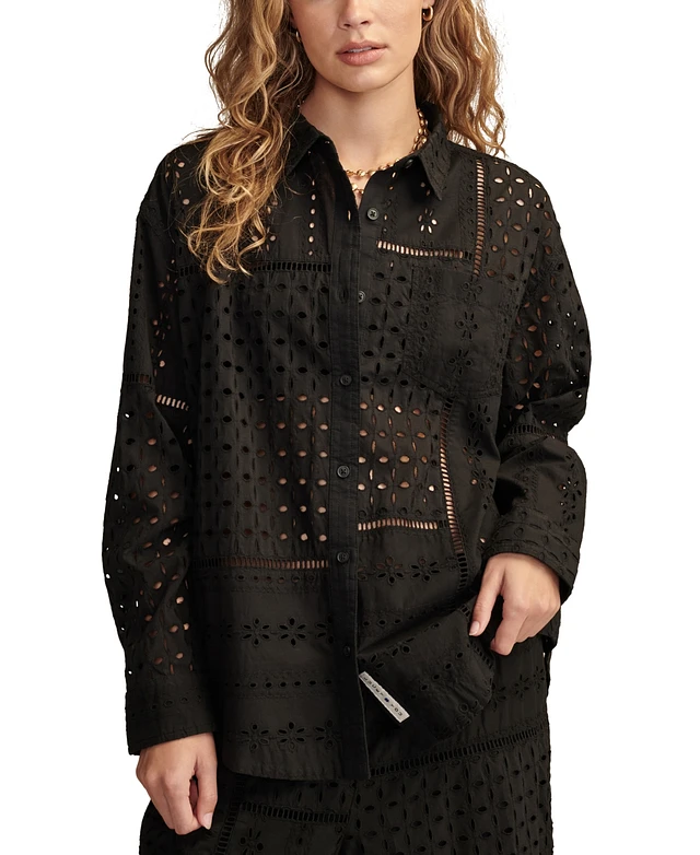 Lucky Brand Women's Cotton Schiffli Embroidered Prep Shirt