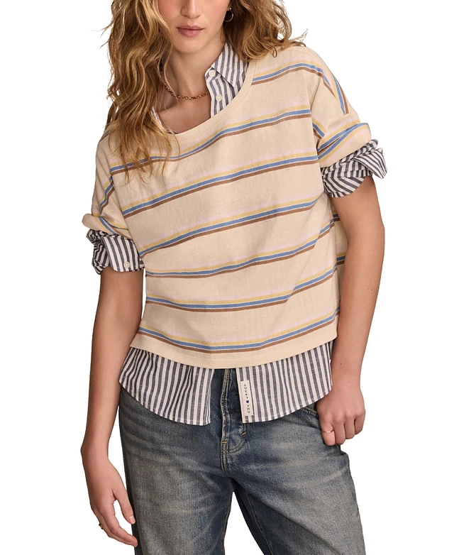 Lucky Brand Women's Striped Cropped Shirt