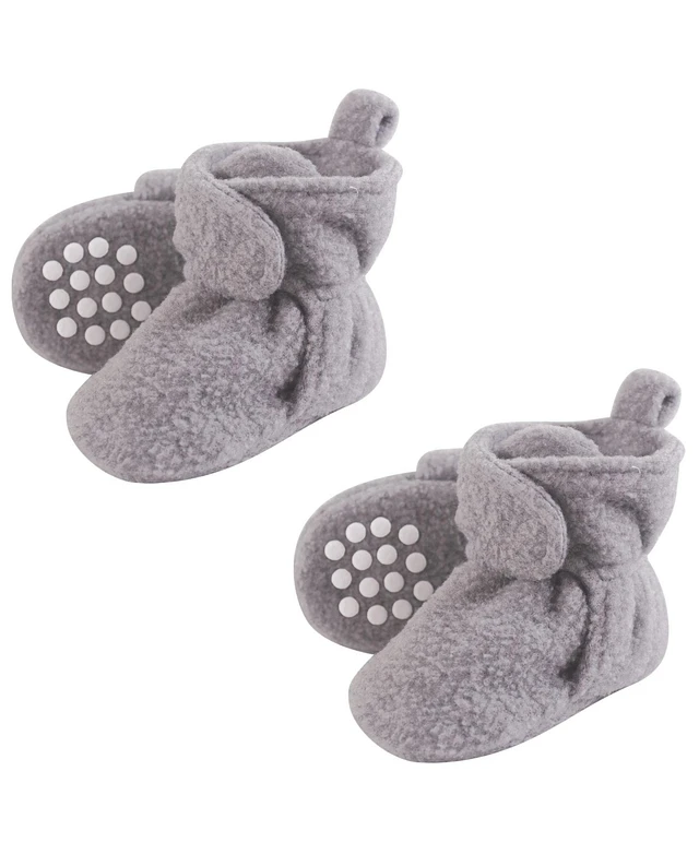 Luvable Friends Baby Boys Unisex Cozy Fleece Booties, Heather Gray 2-Piece, 0-6 Months