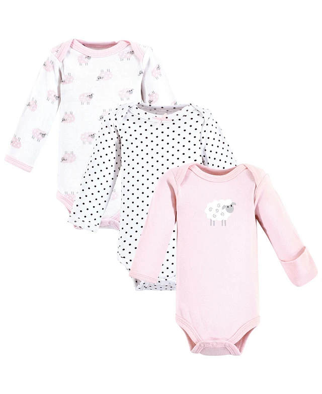 Luvable Friends Baby Girls Preemie Long Sleeve Bodysuits 3pk, Pink Sheep, Preemie