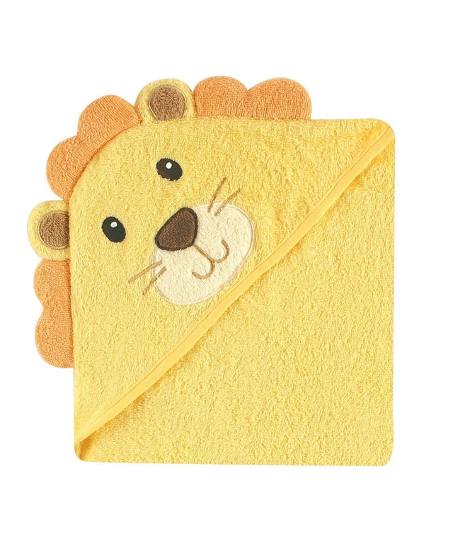 Luvable Friends Baby Unisex Cotton Animal Face Hooded Towel, Lion, One Size