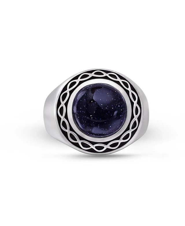 LuvMyJewelry Blue Sand Stone Flat Back Cabochon Gemstone Silver Signet Ring Black Rhodium