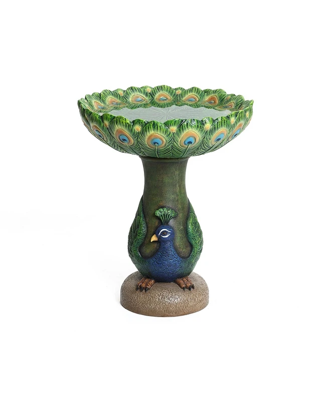LuxenHome Blue and Green Peacock 20.5-Inch Tall Resin Birdbath