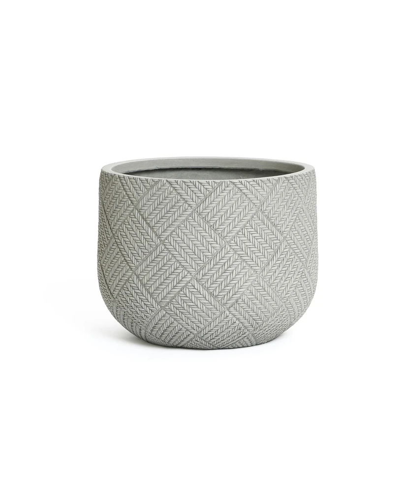 This elegant round planter features a timeless glen pattern that embodies a modern minimalist aesthetic with its soft, warm tones. The planter's body is adorned with a unique woven texture, showcasing staggered lines intricately woven into a delicate grid-like design, which enhances its overall visual appeal. Crafted from high-quality MgO material, this planter offers durability while being lightweight for easy handling. Additionally, the integrated drainage hole at the bottom simplifies plant care, making it a practical choice. Whether placed indoors in a living room or outdoors on a patio or porch, this planter seamlessly elevates the style of any living space.