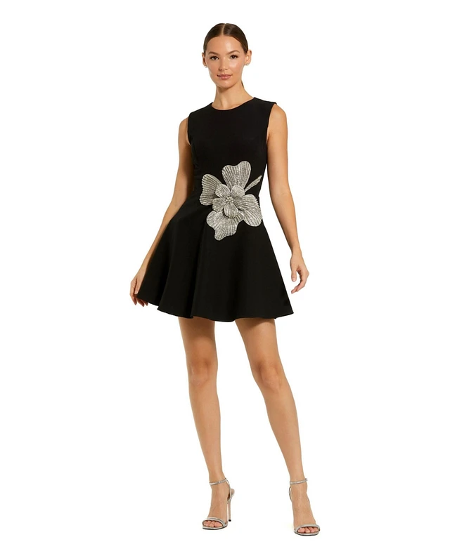 Mac Duggal Women's Crepe Sleeveless Mini Dress With Rhinestone Flower