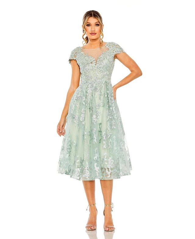 Mac Duggal Women's Sleeveless Embroidered Lace A Line Midi Dress