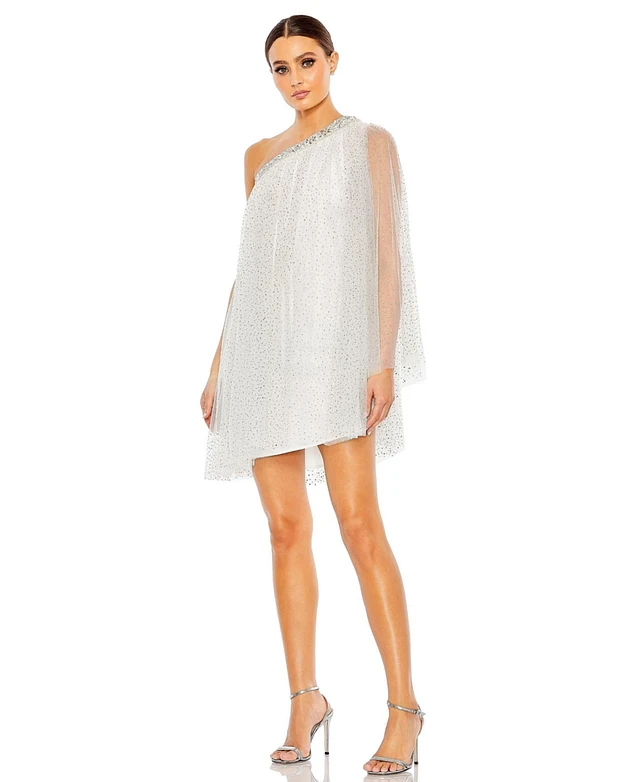 Mac Duggal Women's One Shoulder Cape Sleeve Embellished Gown