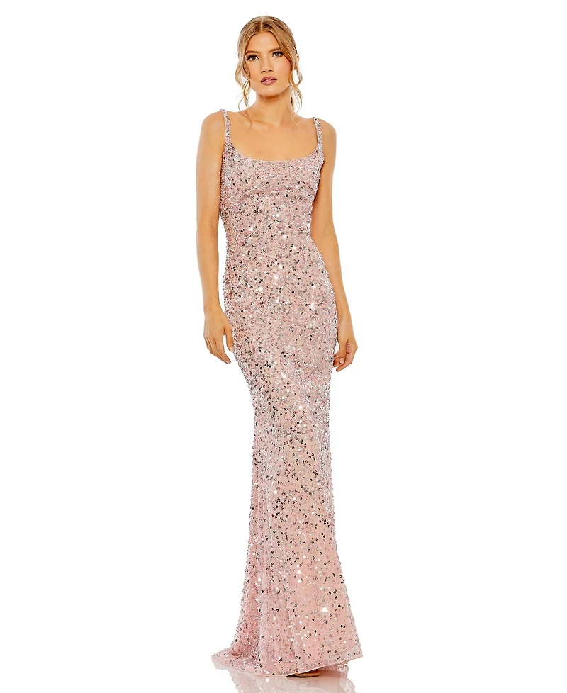Mac Duggal Womens Petite Sequined Low Back Slip Gown
