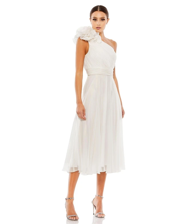 Mac Duggal Women's Rosette One Shoulder Tea Length Dress