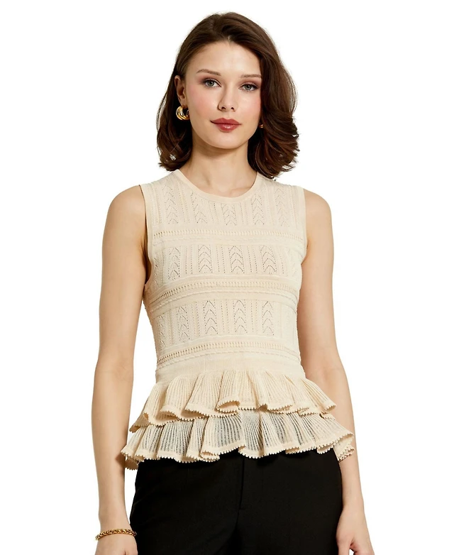 Mac Duggal Women's Sleeveless High Neck Knit Top With Ruffle Hem