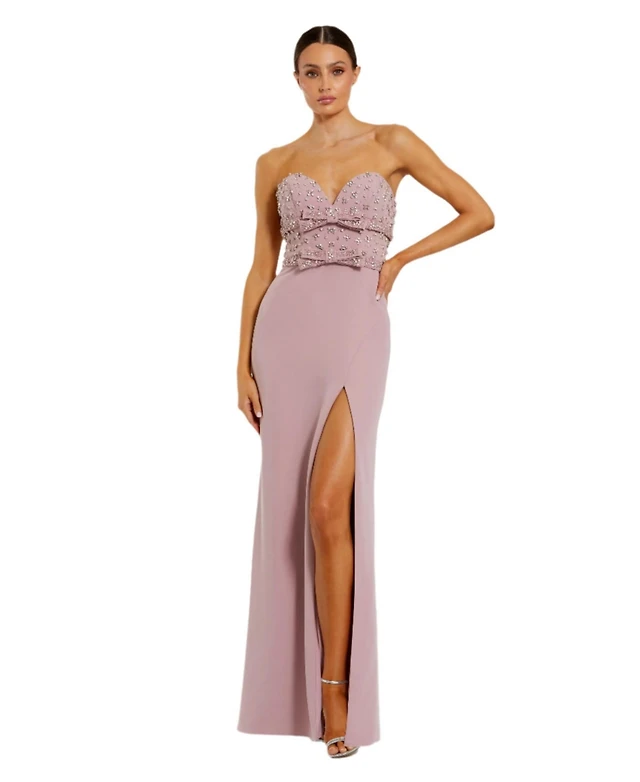 Mac Duggal Women's Elegant Crepe Gown with Embellishments and Thigh-High Slit