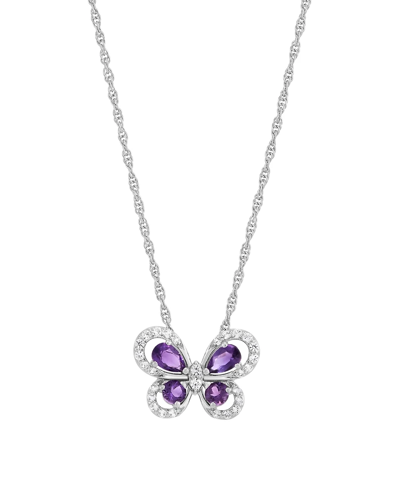 Macy's Amethyst (5/8 ct. t.w.) & White Sapphire (1/4 ct. t.w.) Butterfly Pendant Necklace in Sterling Silver