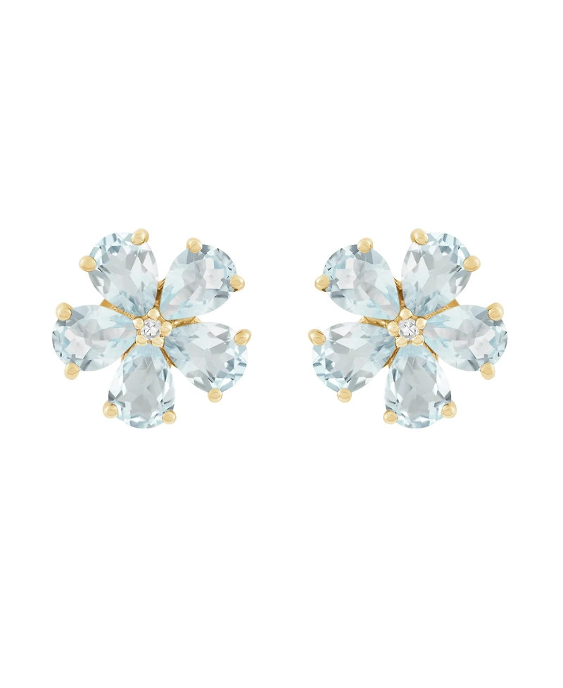 Macy's Aquamarine (1-1/3 ct. t.w.) and Diamond Accent Flower Stud Earrings in 14k Yellow Gold in Ponce, PR
