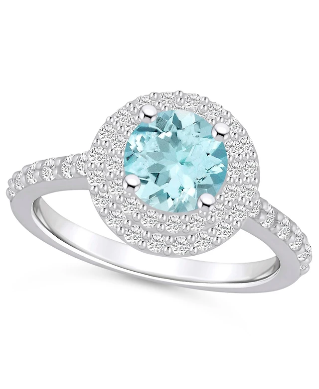 Macy's Aquamarine and Diamond Accent Halo Ring 14K Gold
