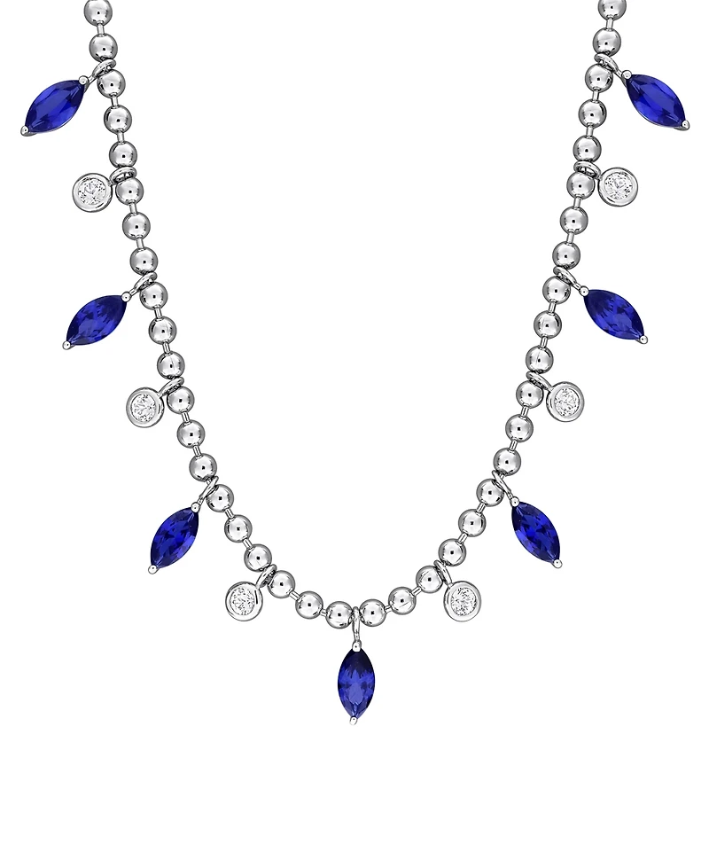 Striking contrast defines this Macy's necklace, showcasing created blue and white sapphires set along a refined bead chain. The design delivers polished sparkle suited for both daytime and evening wear.