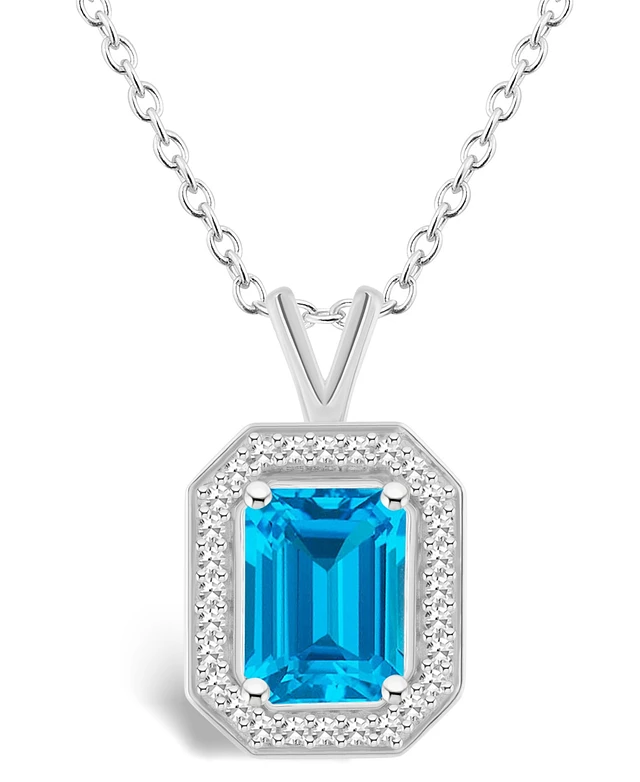 Macy's Blue Topaz (2 ct. t.w.) and Diamond (1/7 ct. t.w.) Halo Pendant Necklace in Sterling Silver