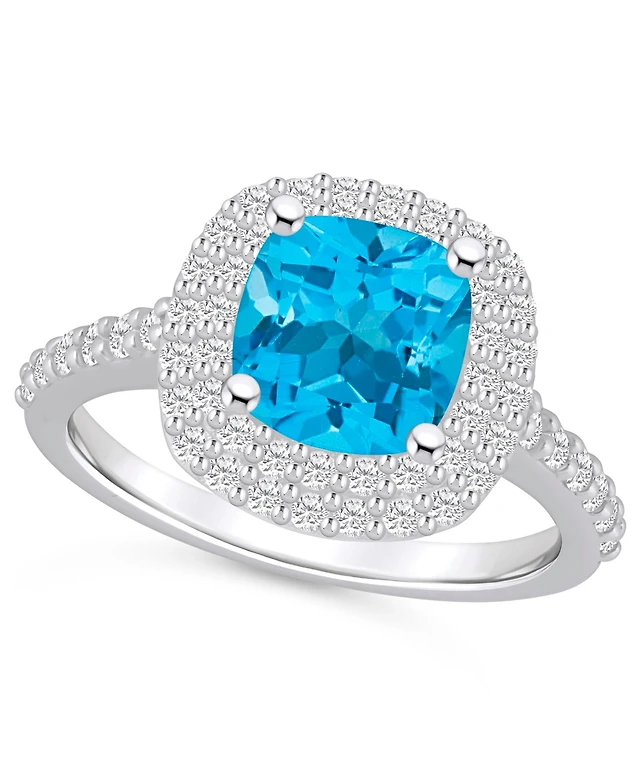 Macy's London Blue Topaz (2-3/4 ct. t.w.) and Diamond (1/4 Halo Ring 14K White Gold