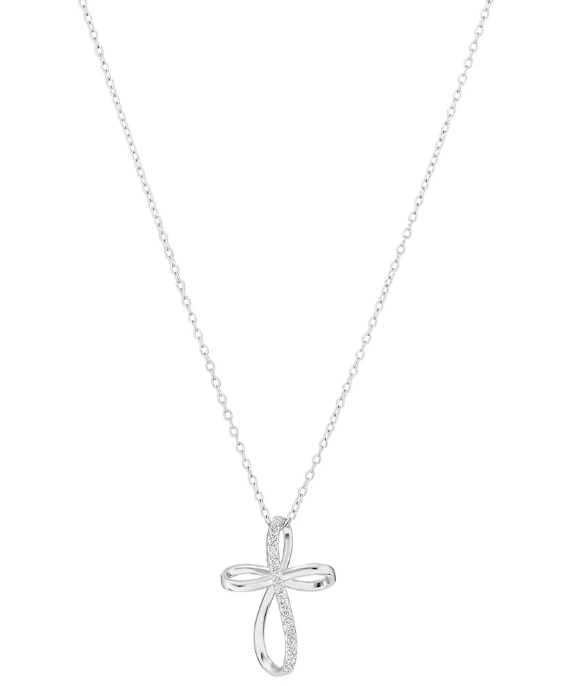 Macy's Cubic Zirconia Cross Necklace (0.14 ct. t.w.) in Sterling Silver (also in 14k Gold)