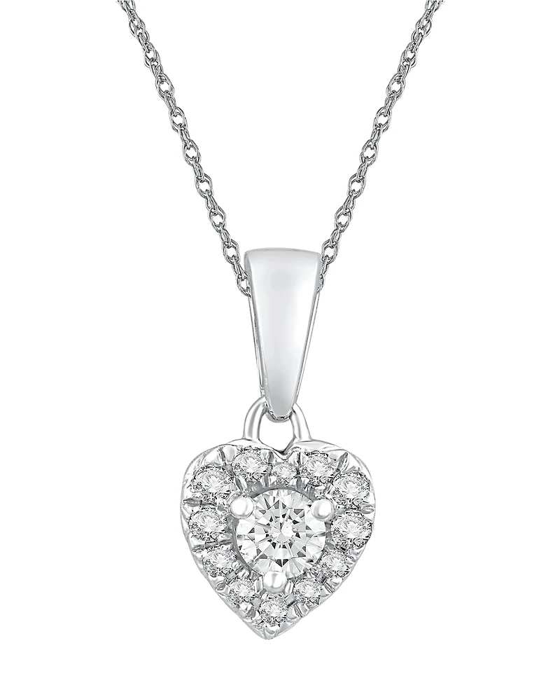 Add a touch of heartfelt sparkle with this diamond heart-shaped halo pendant necklace from Macy's. Suspended from a rope chain with a spring ring clasp, it offers a secure fit.
