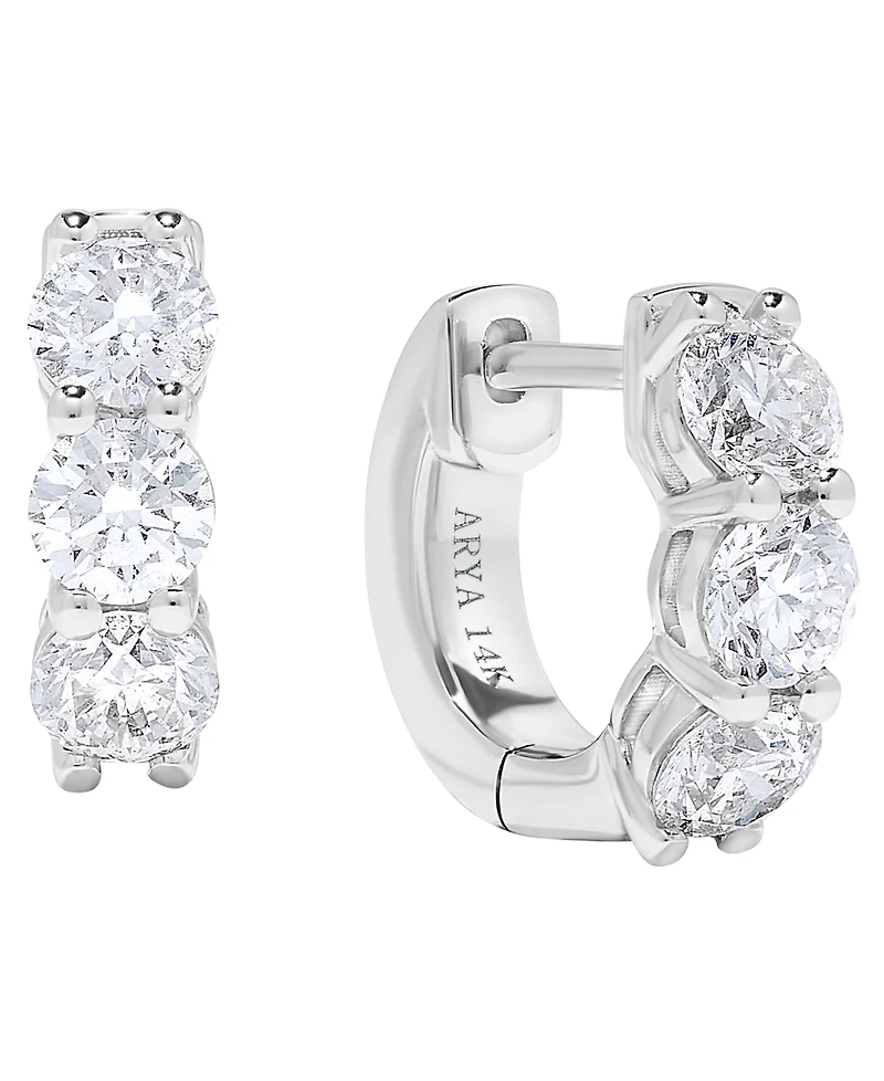 Illuminate your look with these Macy's huggie earrings, featuring round diamonds that deliver luminous shimmer. A white gold setting amplifies brightness, and the clip post backs provide dependable support.