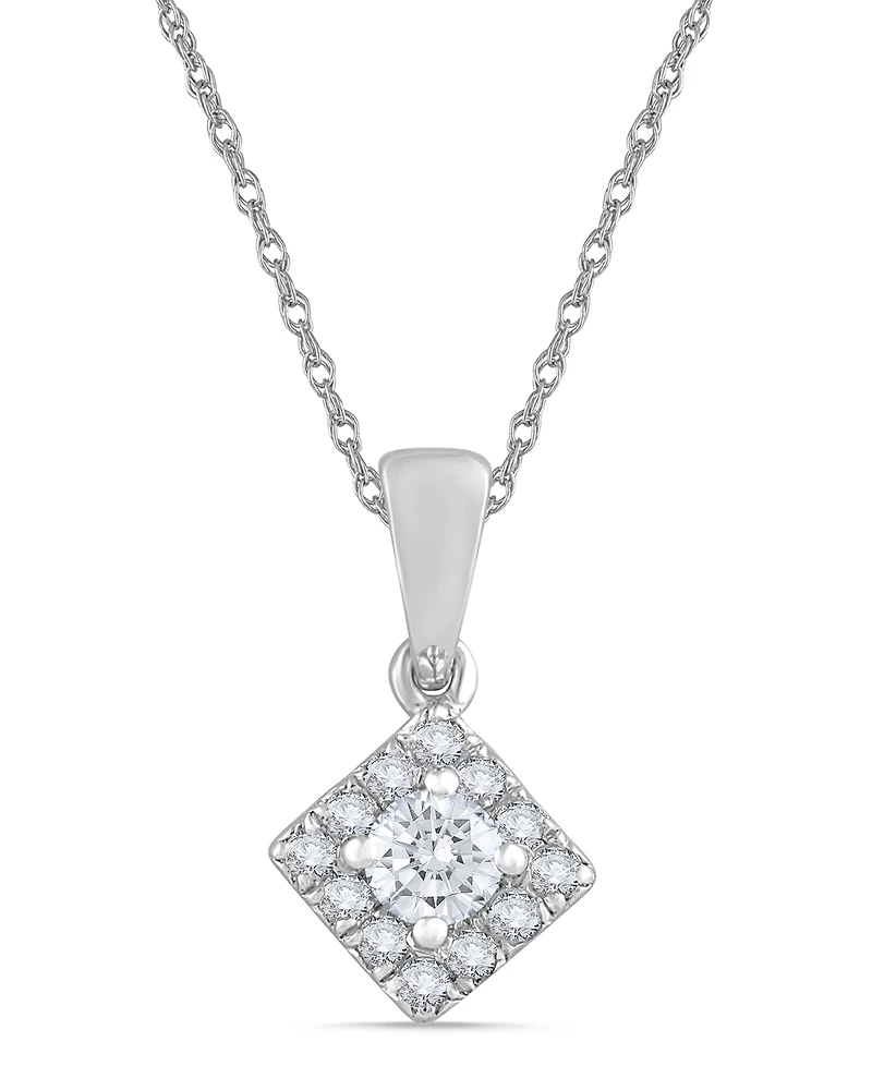 Macy's Diamond Round Shape Halo Design Pendant Necklace (1/4 ct. t.w.) in 10k White Gold