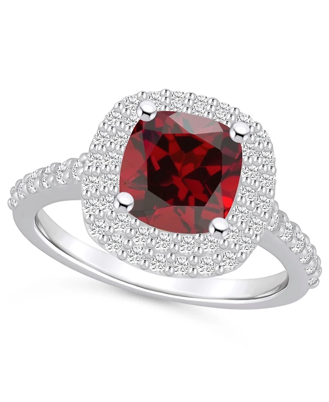 Macy's Garnet and Diamond Accent Halo Ring 14K White Gold