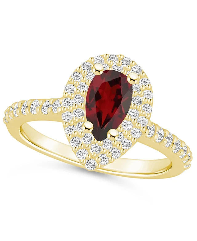 Macy's Garnet and Diamond Accent Halo Ring 14K Yellow Gold