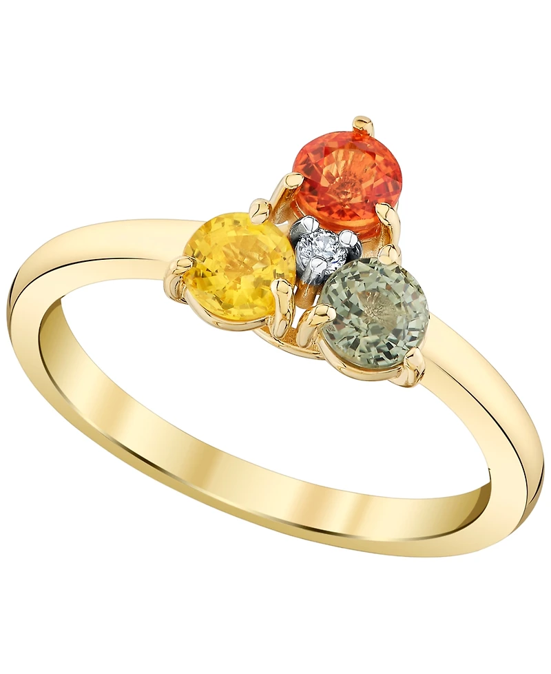 Sparkling color meets timeless design in this Macy's ring, featuring green, orange, and yellow sapphires that create a vibrant, eye-catching look. Set in 10k gold, the diamond accents add refined sparkle and lasting elegance.