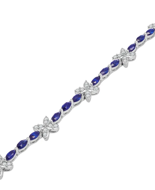 Macy's grown Blue Sapphire and grown White Sapphire Bracelet in Sterling Silver