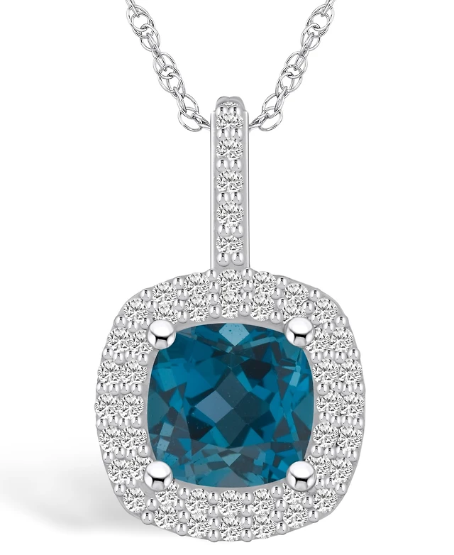 Macy's London Blue Topaz (1-5/8 Ct. T.w.) and Diamond Accent Pendant Necklace in 14K White Gold