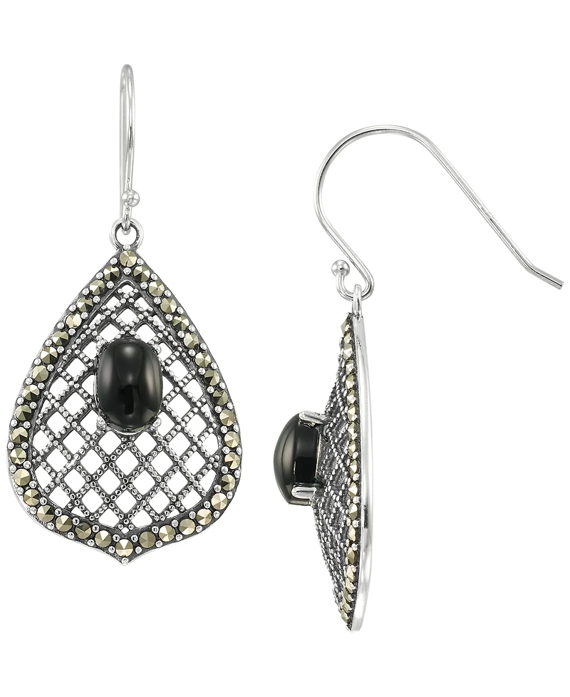 Macy's Marcasite (0.64 ct. t.w.) and Black Onyx (0.5 ct. t.w.) Drop Earrings in Sterling Silver