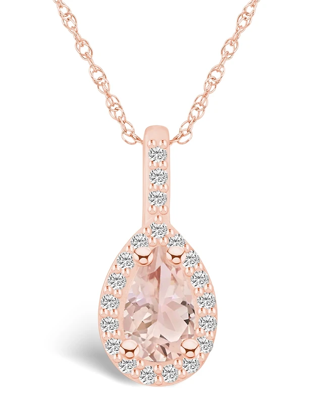 Macy's Morganite (3/4 Ct. T.w.) and Diamond (1/5 Ct. T.w.) Halo Pendant Necklace in 14K Rose Gold
