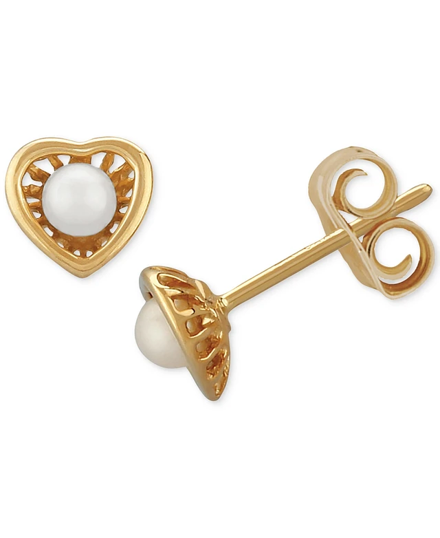 Macy's White Pearl (3mm) Heart Stud Earrings in 14k Yellow Gold