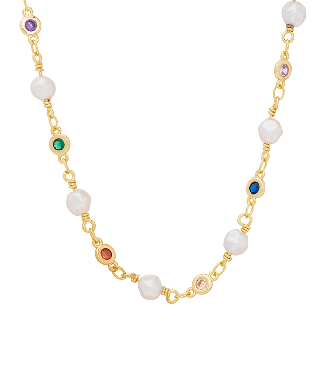 Macy's Women's Imitation Pearl and Stimulated Gemstones Necklace