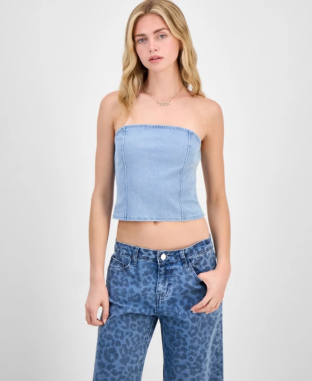 Madden Girl Juniors' Contrast-Waist Denim Skirt