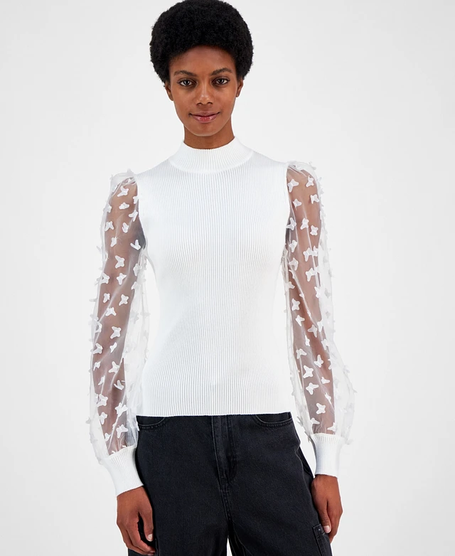 Madden Girl Juniors' Ribbed Butterfly-Sleeve Sweater