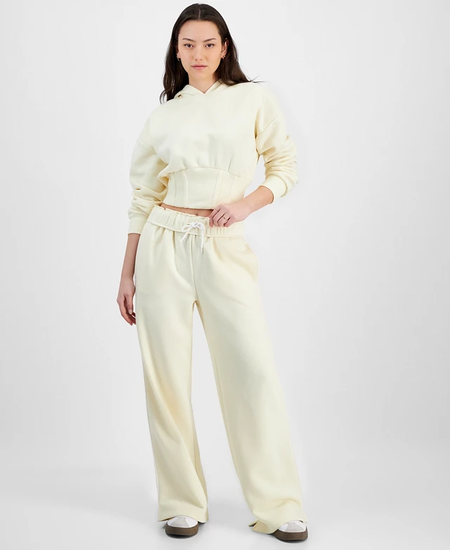 Madden Girl Juniors' Rolled-Cuff Wide-Leg Fleece Sweatpants