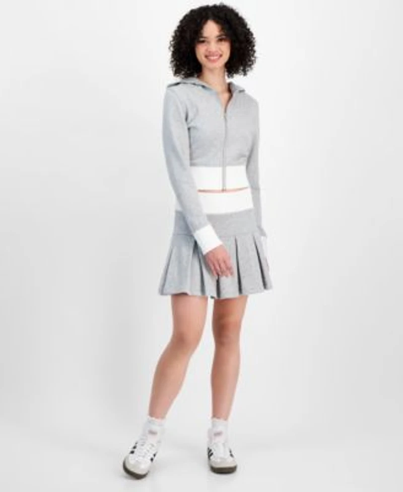 Madden Girl Juniors Zip Up Hoodie Pleated Mini Sweat Skirt