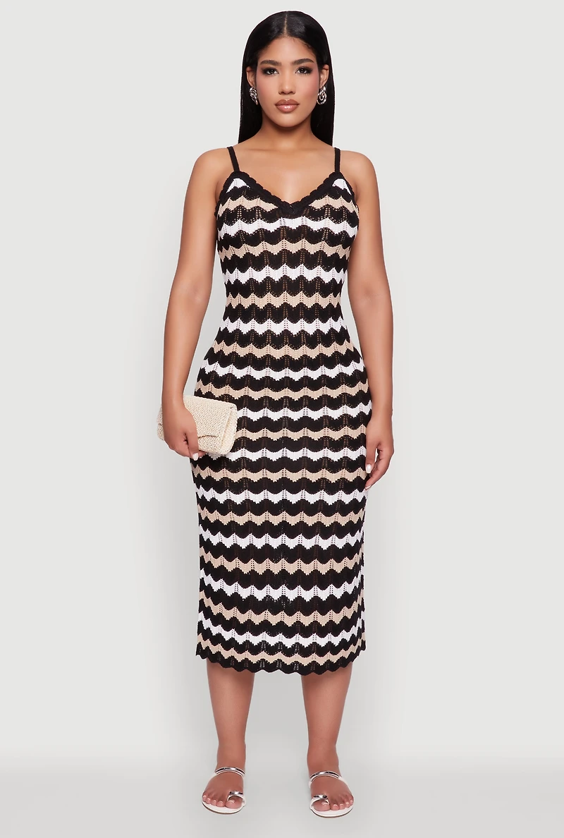 Madden Girl Wavy Striped V Neck Sleeveless Crochet Cami Dress in Ponce, PR