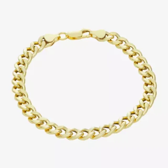 Made In Italy Mens 14K Gold Over Silver 8 Inch Hollow Cuban Chain Bracelet