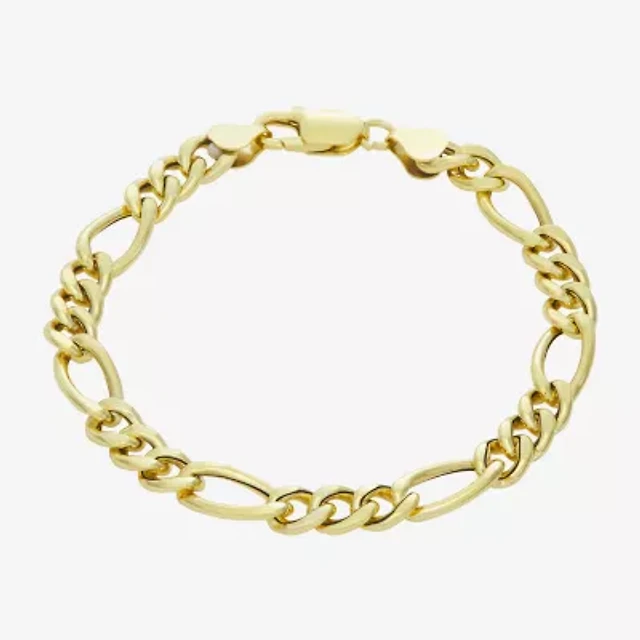 Made In Italy Mens 14K Gold Over Silver 8 Inch Hollow Figaro Chain Bracelet